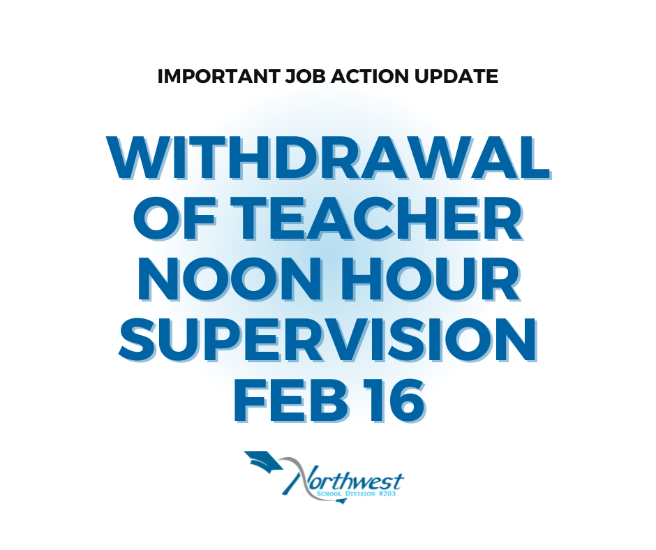 This means there will be no classroom teachers supervising noon hours across NWSD on Friday, February 16. Supervision will be provided by non-teaching staff and/or parent/community members. If you are an approved volunteer, and can help with noon supervision on Friday, please contact your local school.